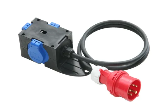 5mm² schwarz mit Stecker 16A 5p 400V 3xSK-Steckdose 16A 250V IP54 ungesichert phasenaufgeteilt Verteiler betriebsfertig angeschlossen